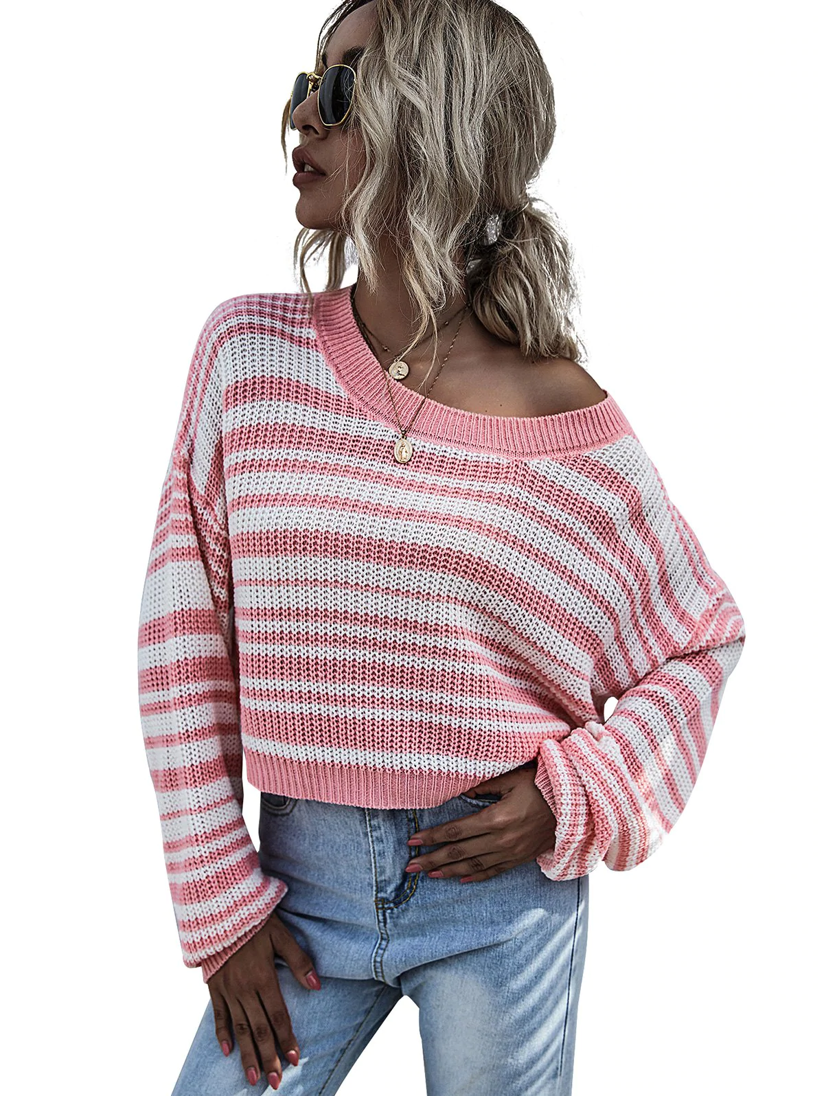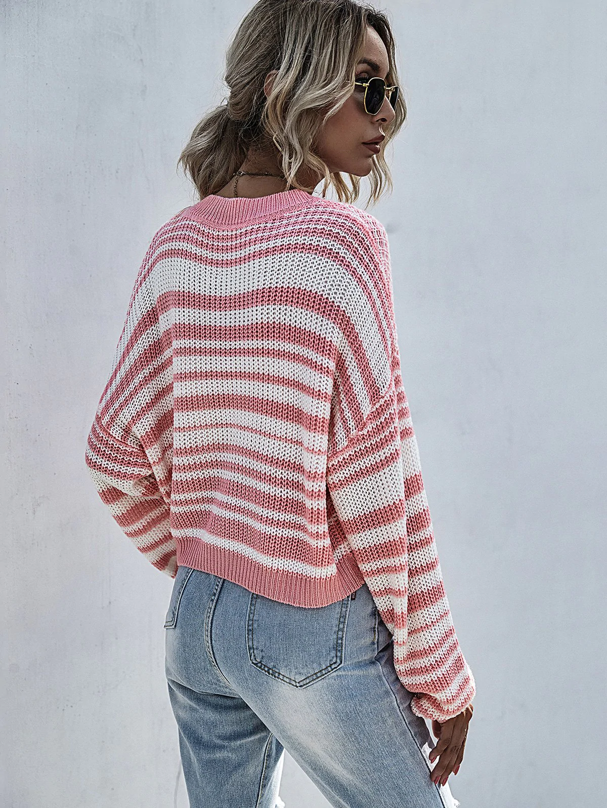Striped Drop Shoulder Knit Sweater