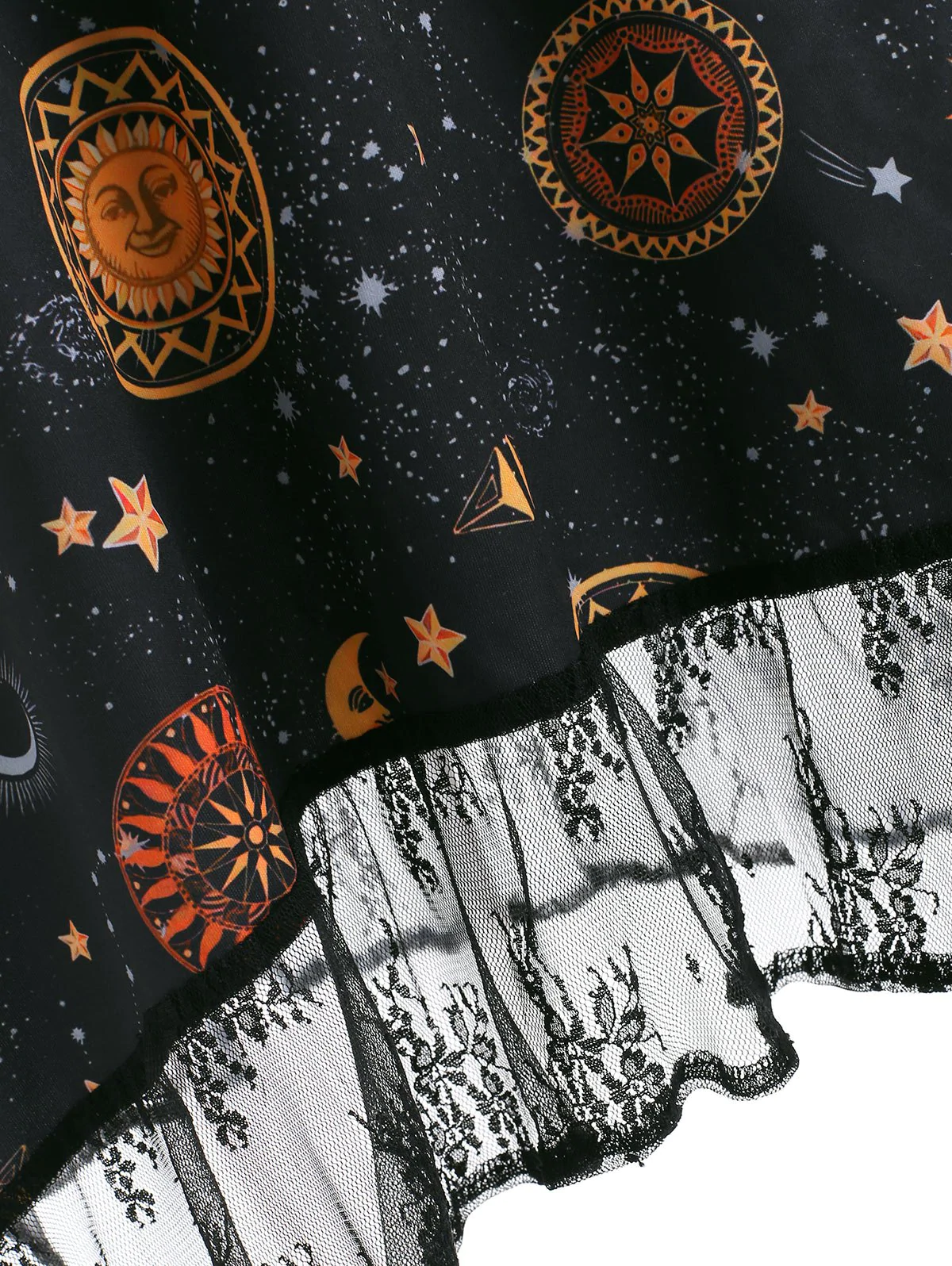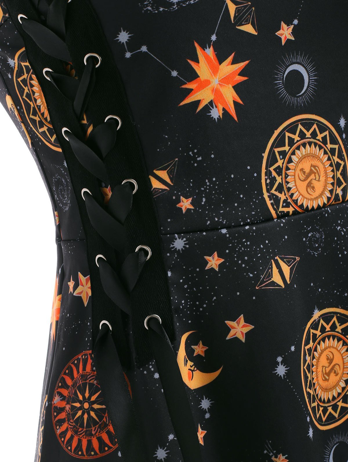Sun Moon Star Print Lace Insert Lace-up Dress