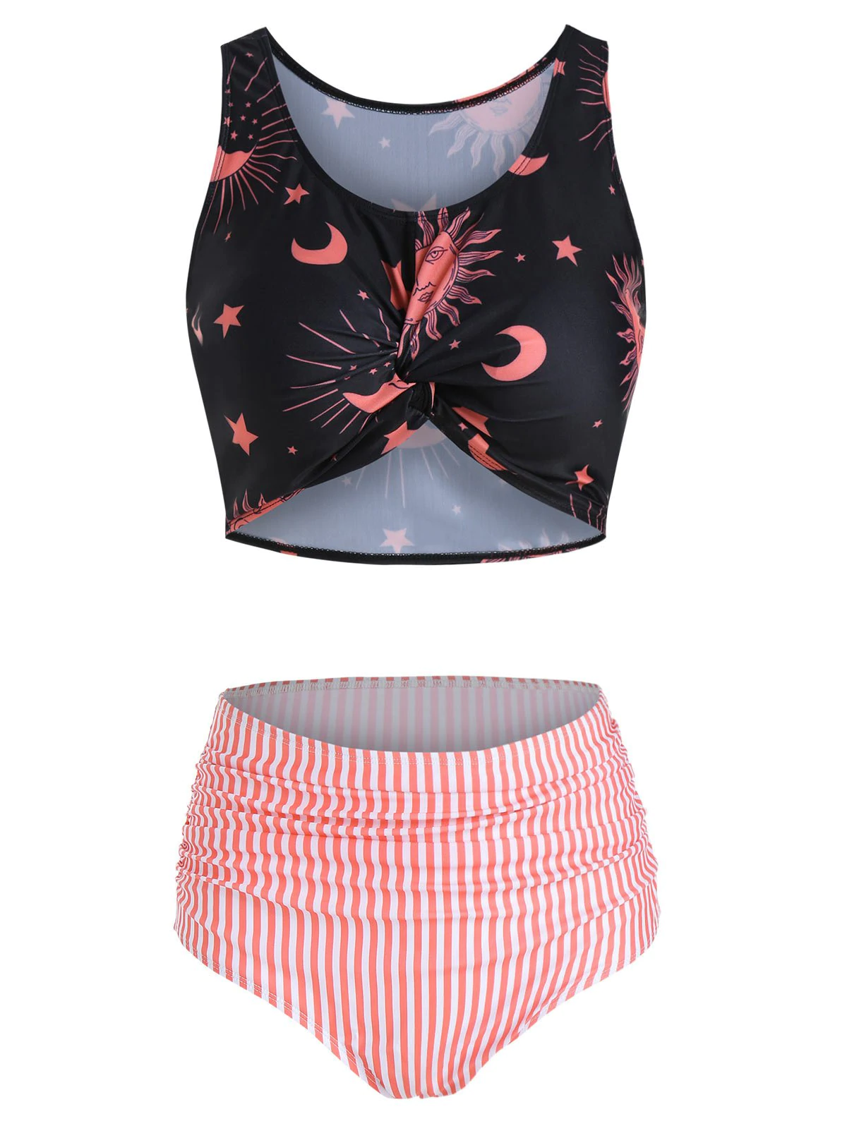 Sun Moon Star Print Twist Front Bikini Swimwear