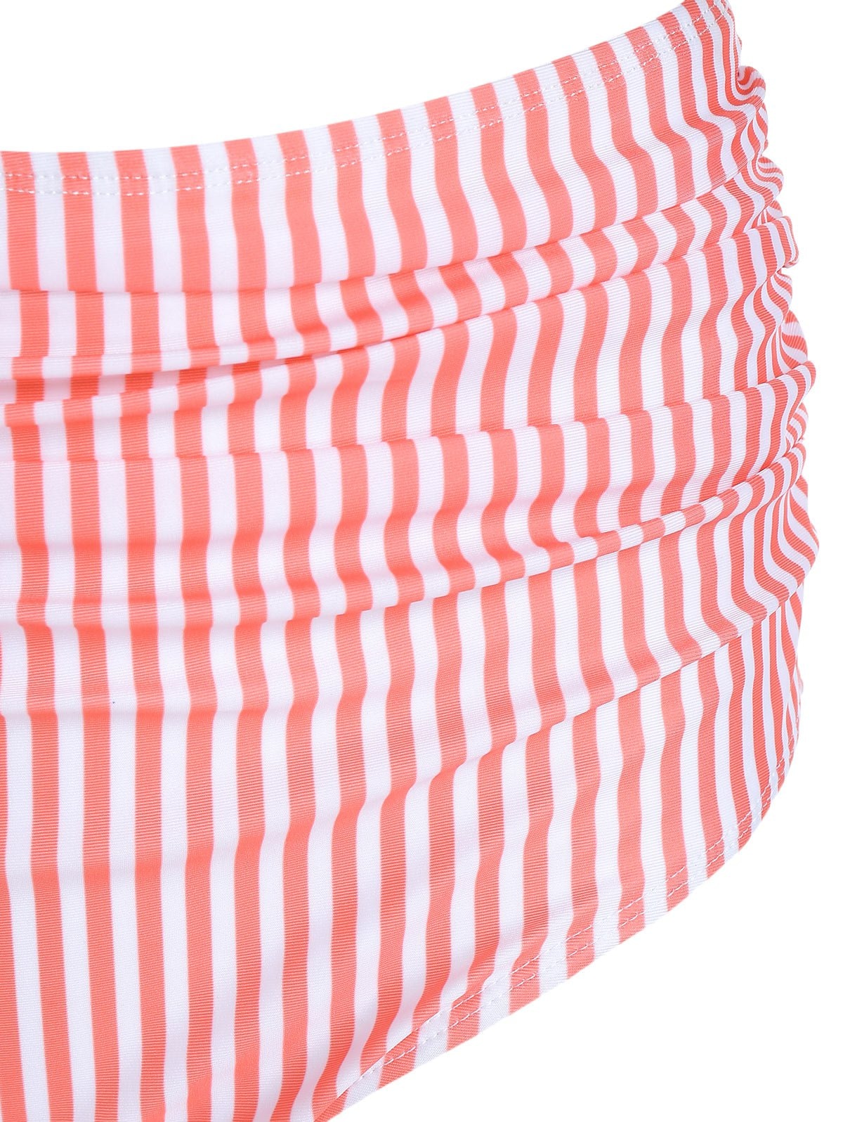 This bikini top designed in a sum moon star print fabrication with twist detail at the bust, bikini bottoms featured in a striped pattern and ruched detail. Let the Bikini set brighten up your day!