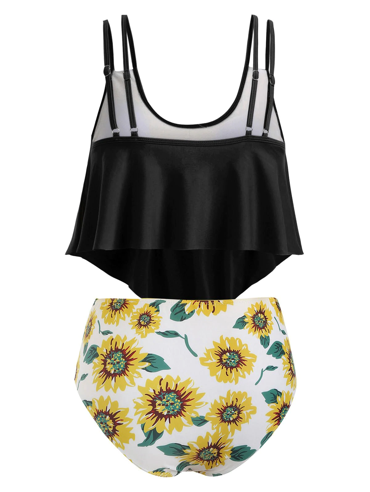 Sunflower Contrast Overlay Plus Size Tankini Set