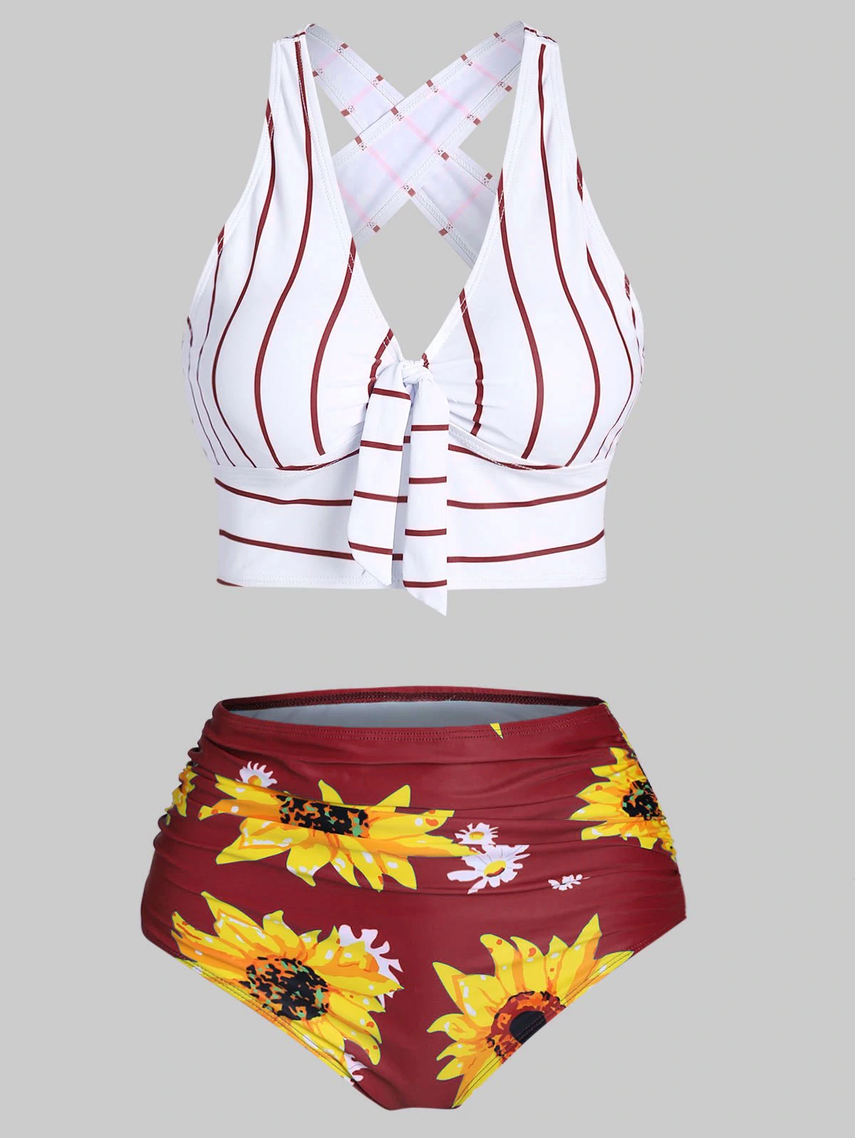Sunflower Striped Criss Cross Tummy Control Bikini Swimwear