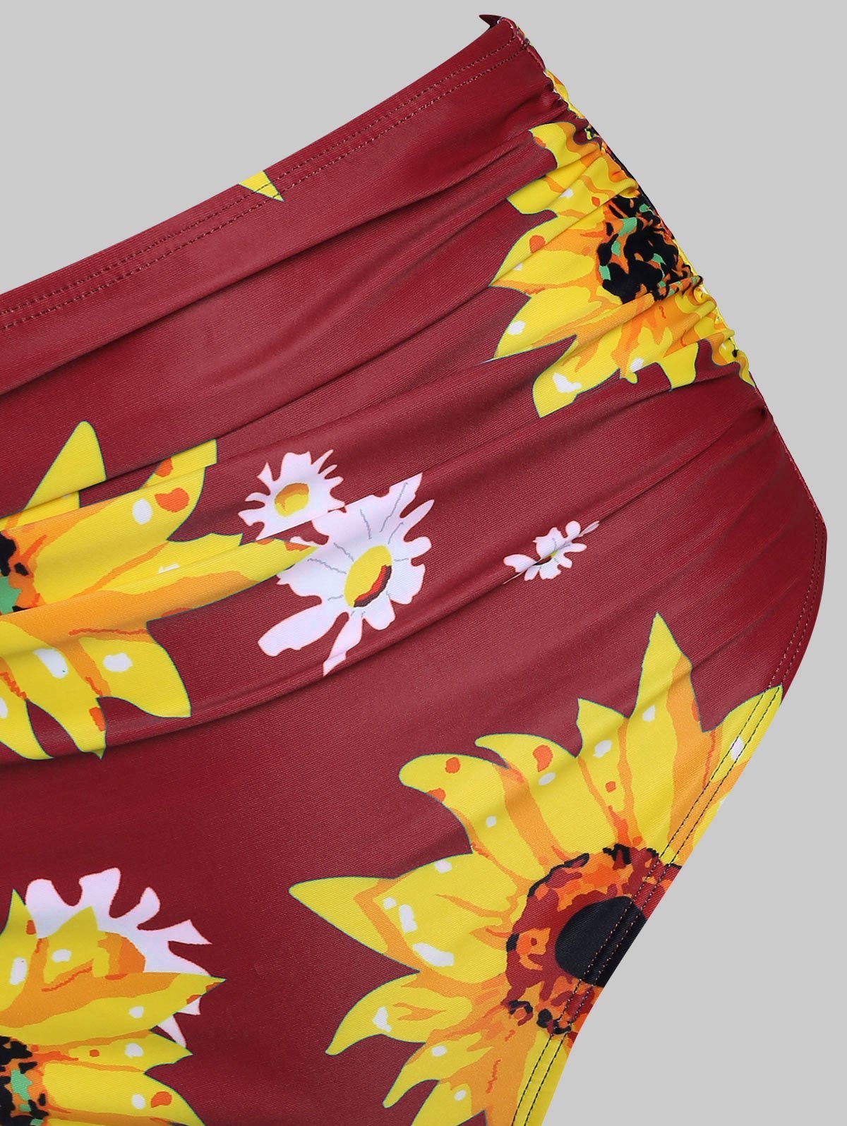 Sunflower Print Ruched Halter Bikini Swimsuit