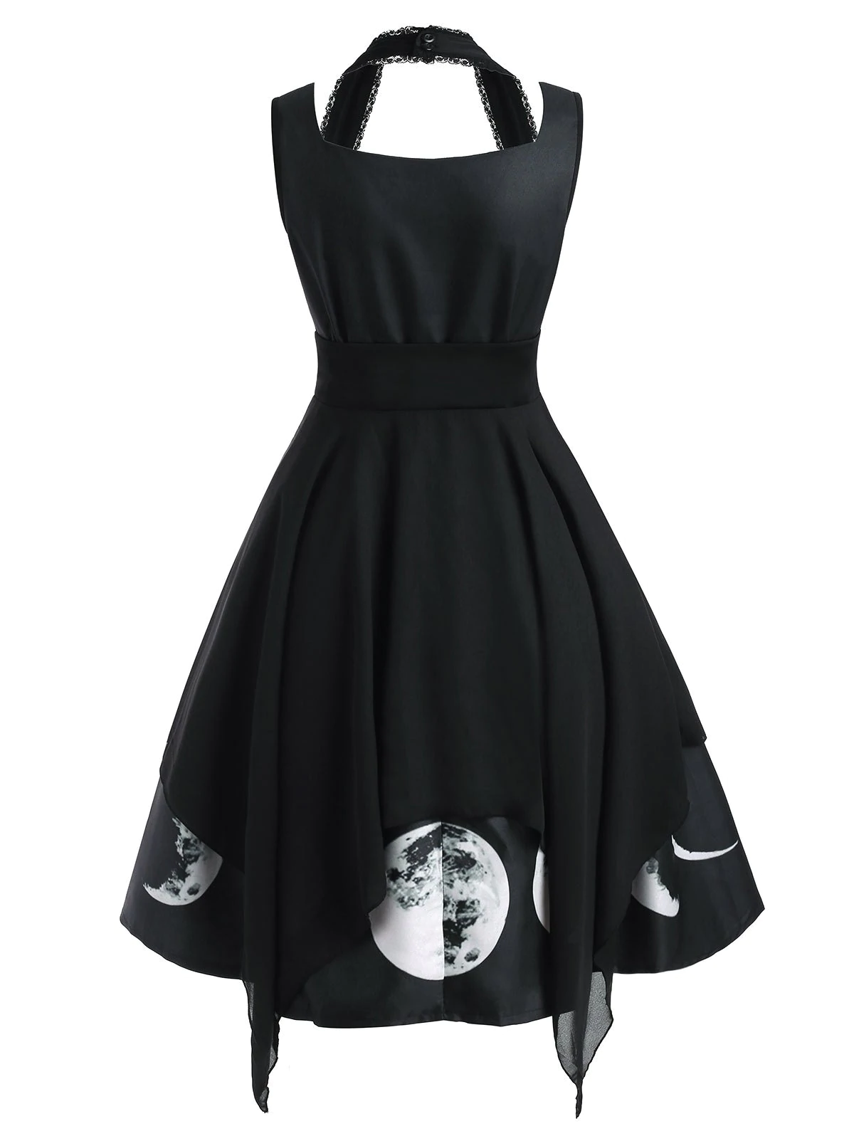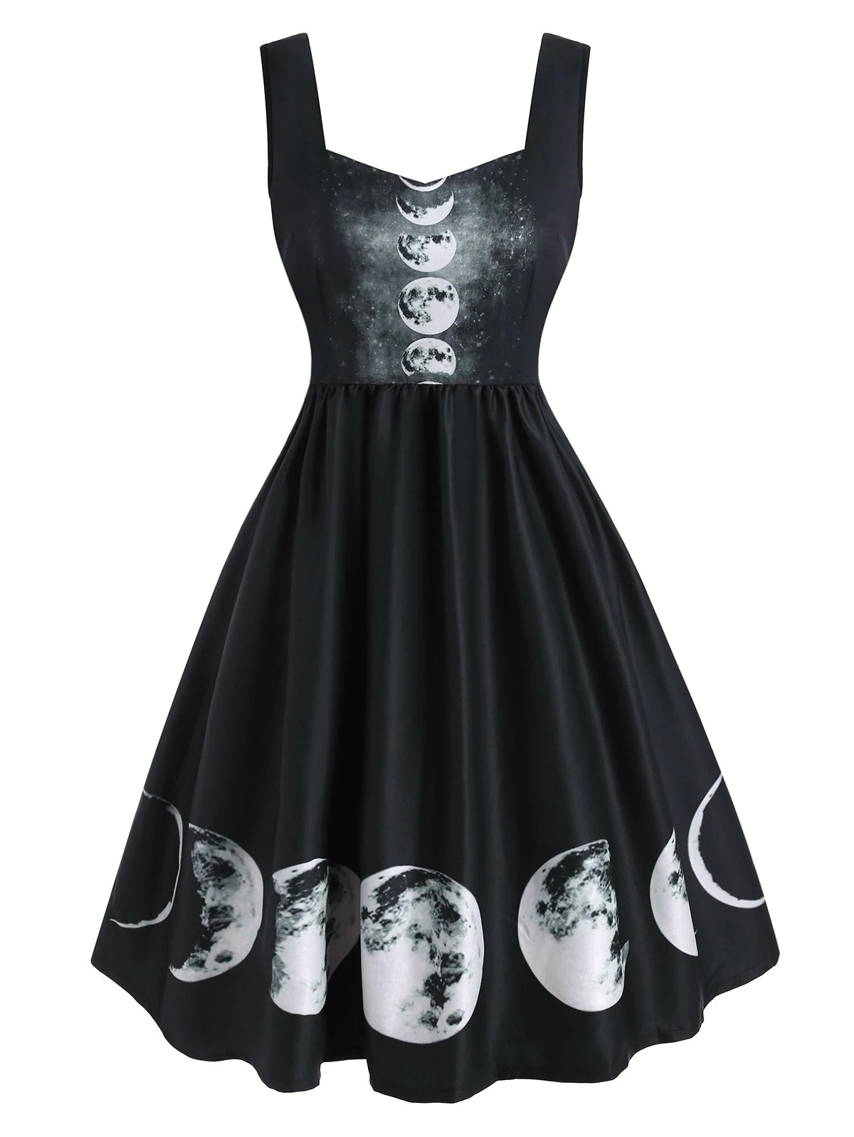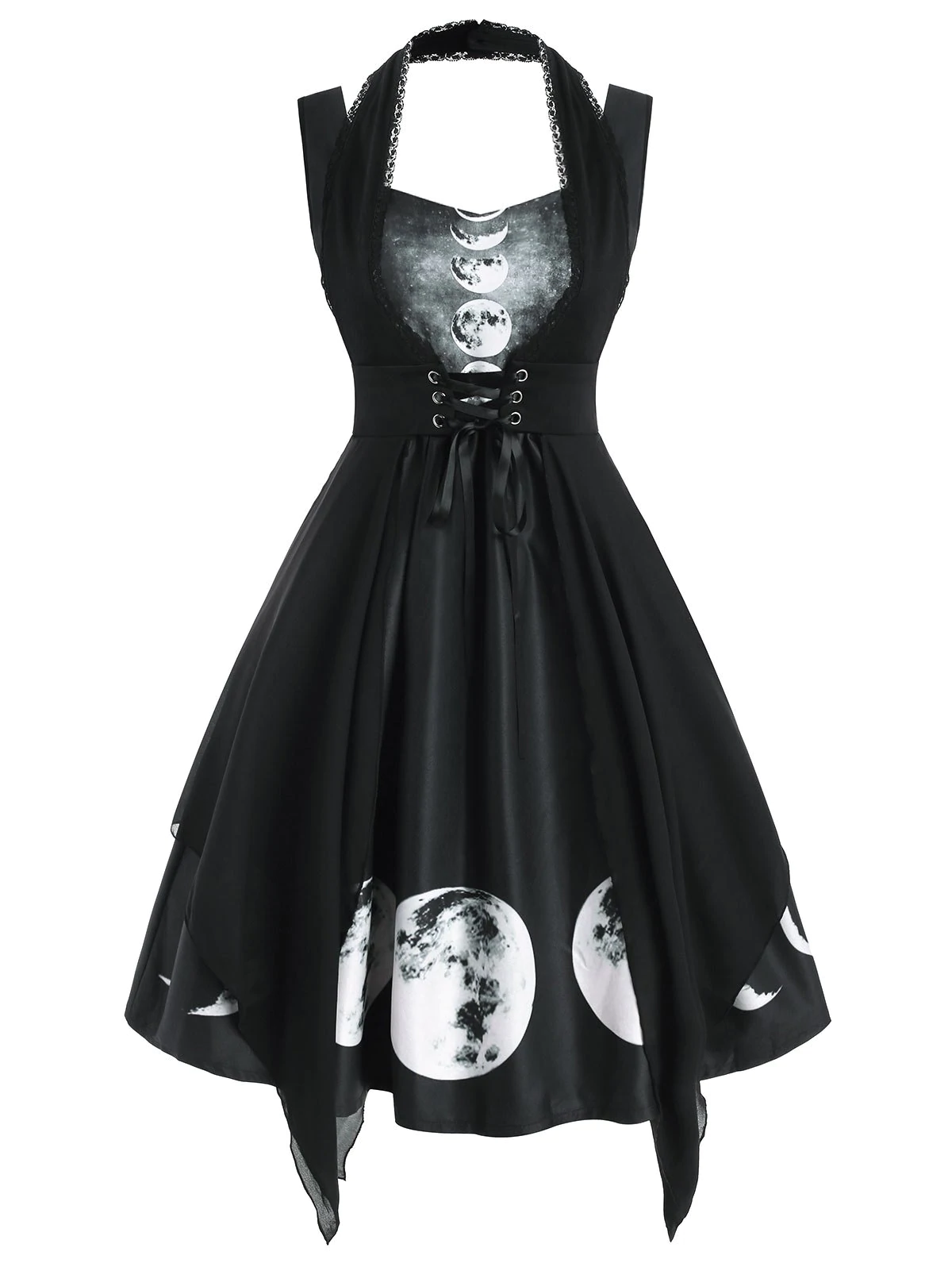 Sweetheart Lunar Eclipse Print Dress with Lace Insert Corset
