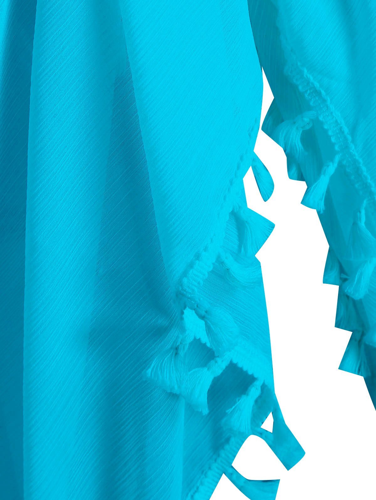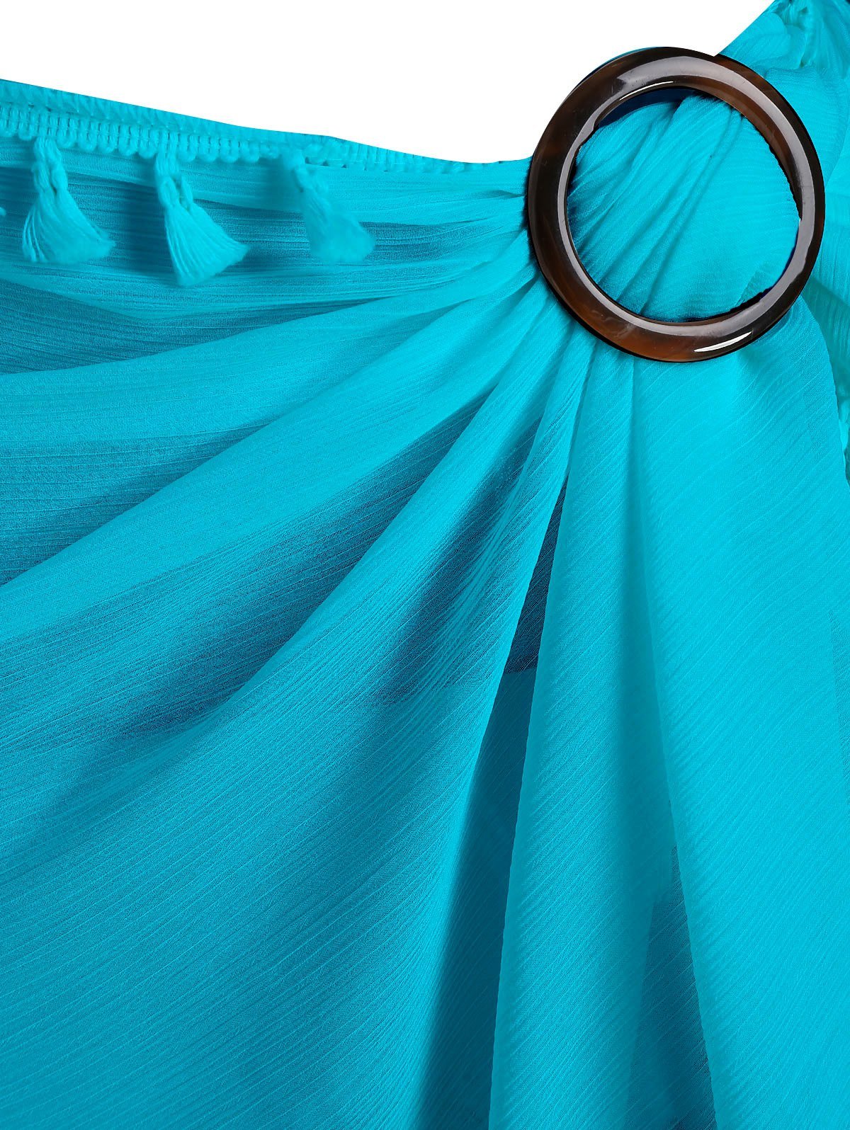 Fluttery tasseled edges add much fun to this breezy sheer skirt designed with a retro ring that can perfectly wrap the curves while you are strolling around the beach sands.