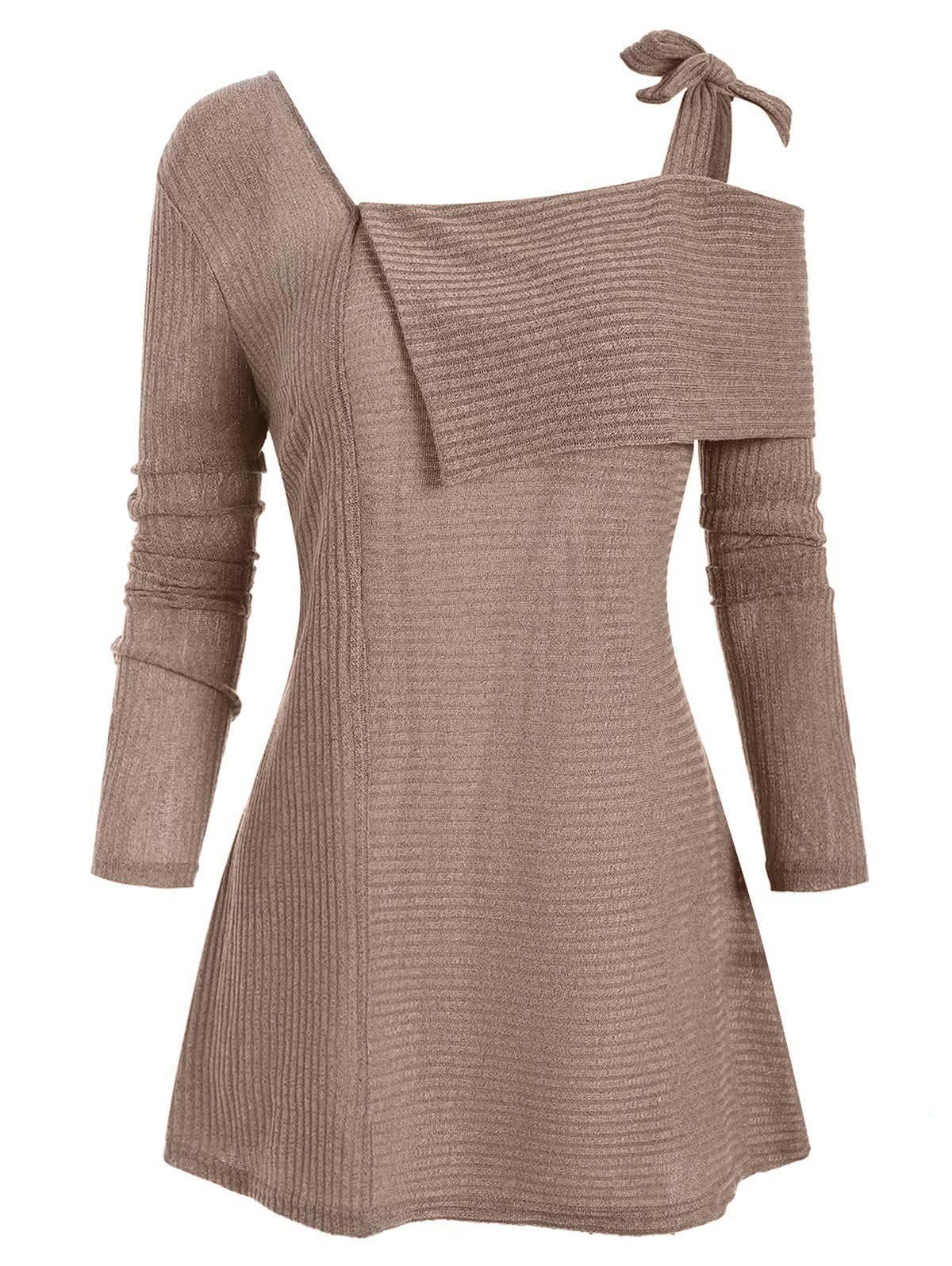 Tie Ribbed Folded Plus Size Knitwear