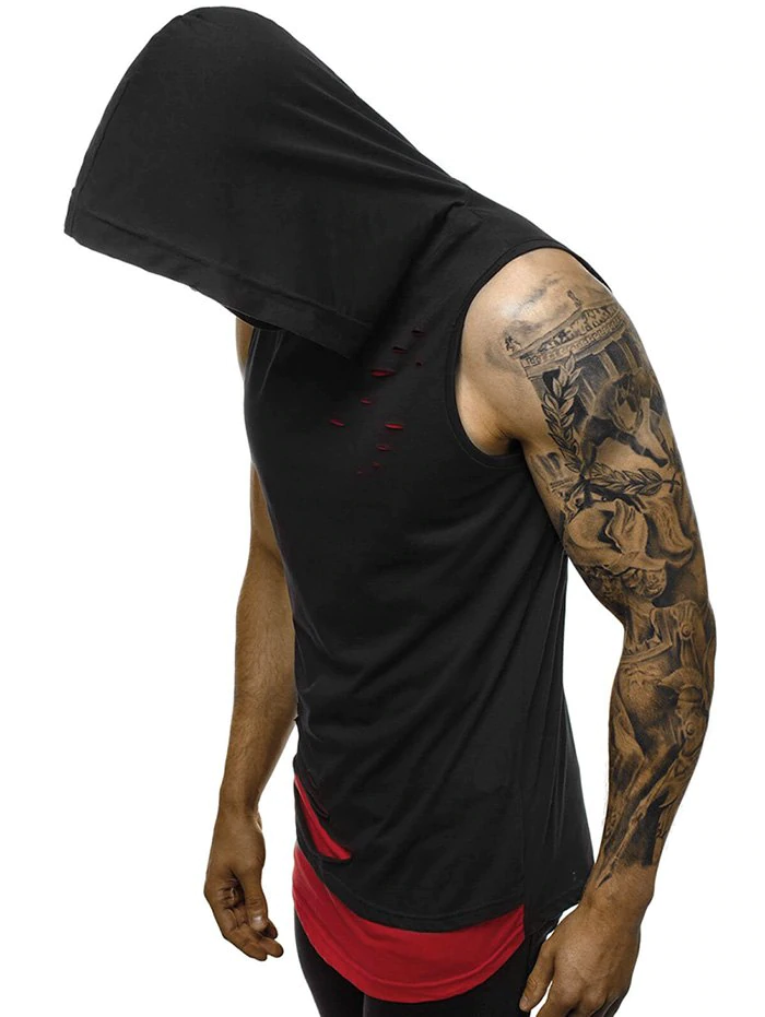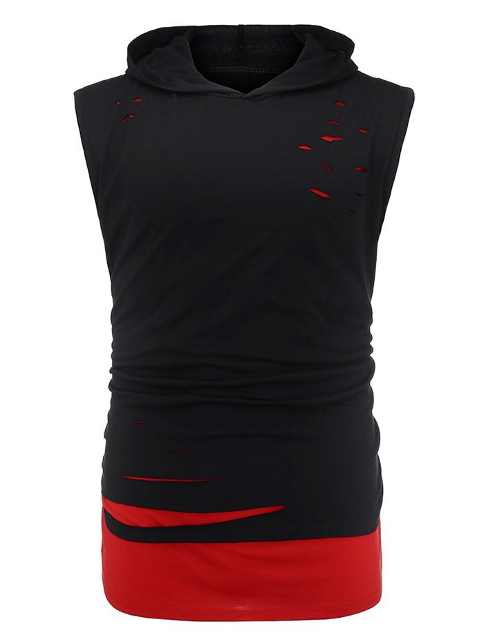 Two Tone Distressed Hooded Tank Top
