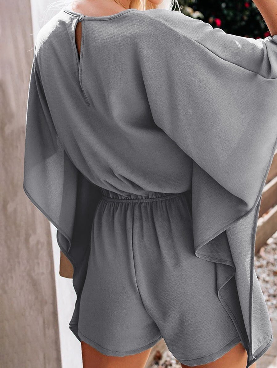 V Neck Butterfly Sleeve Keyhole Back Romper