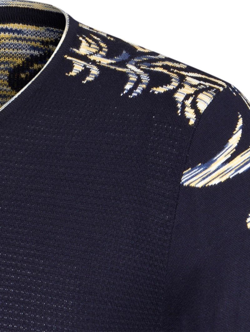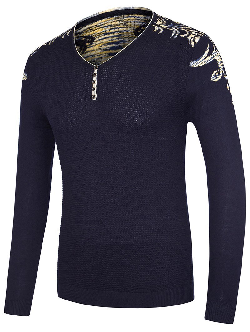 V Neck Button Embellished Patterned Kintwear