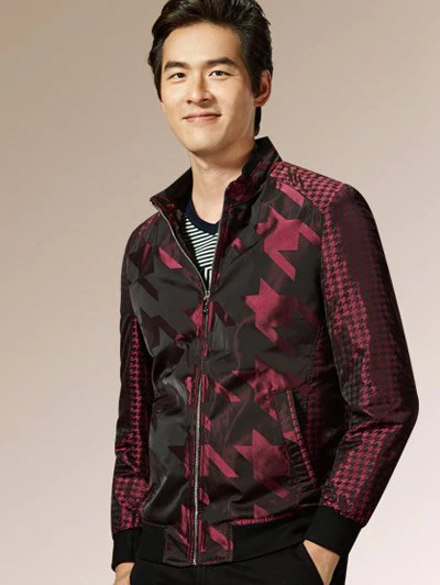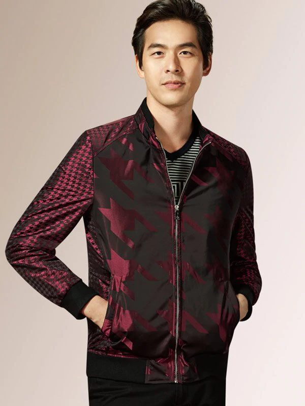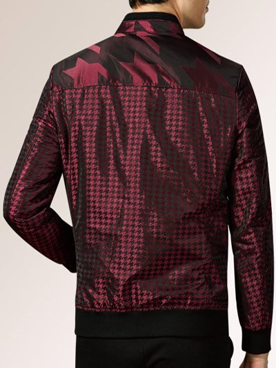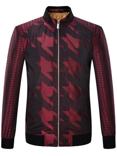 Zip Up Houndstooth Pattern Long Sleeve Padded Jacket