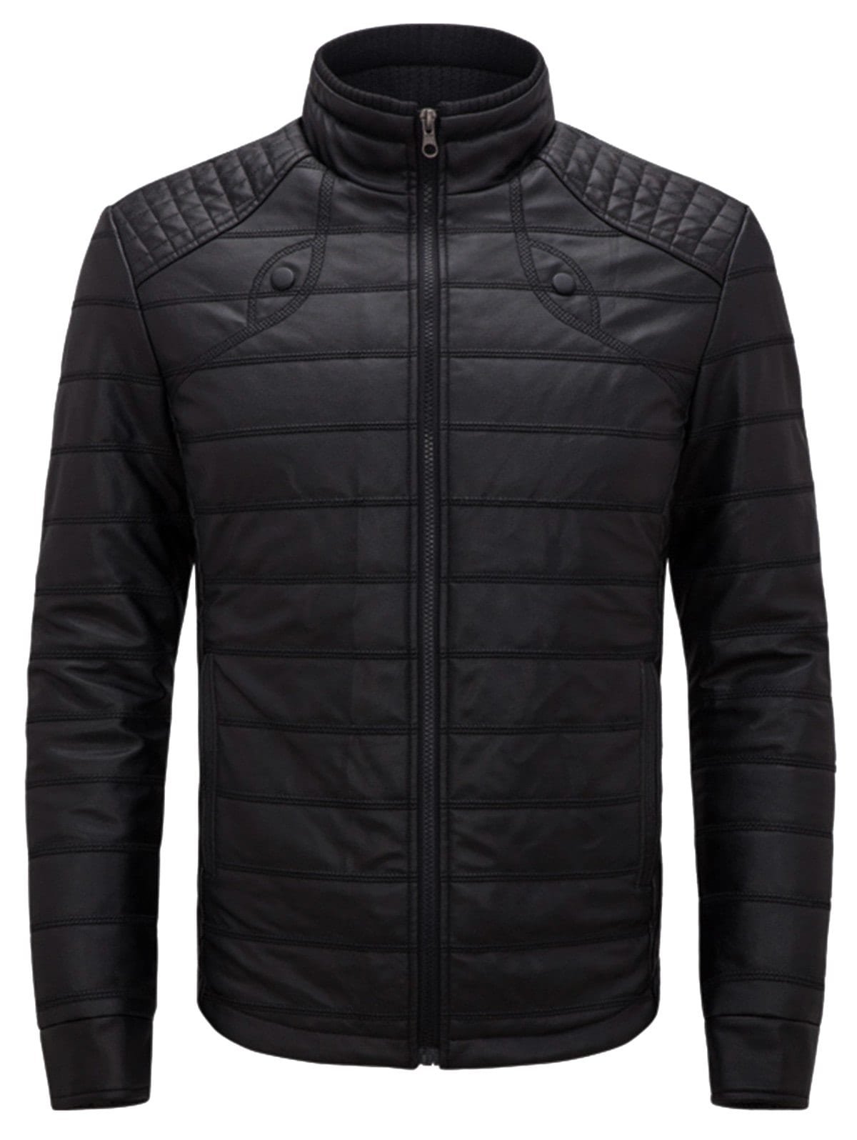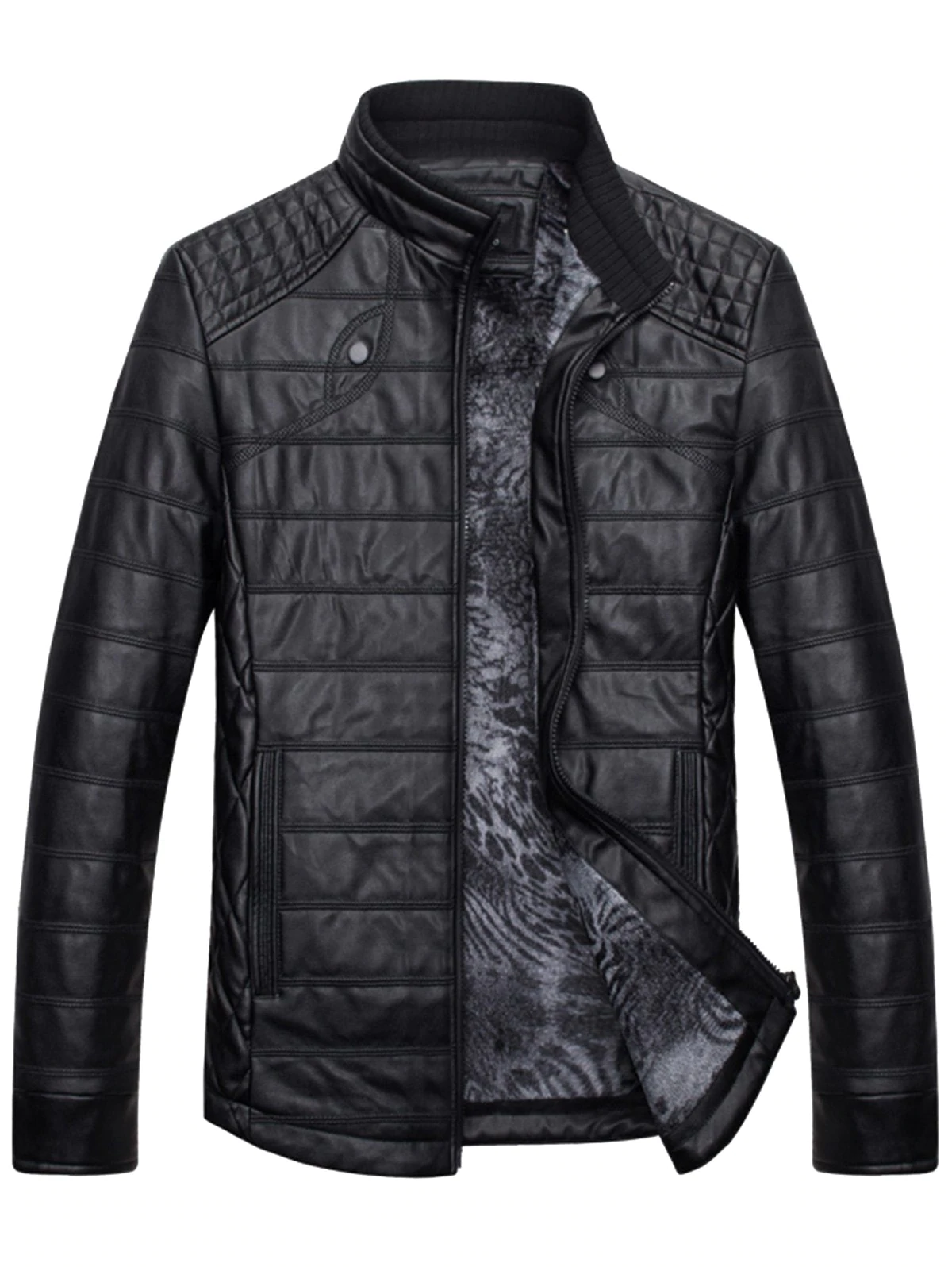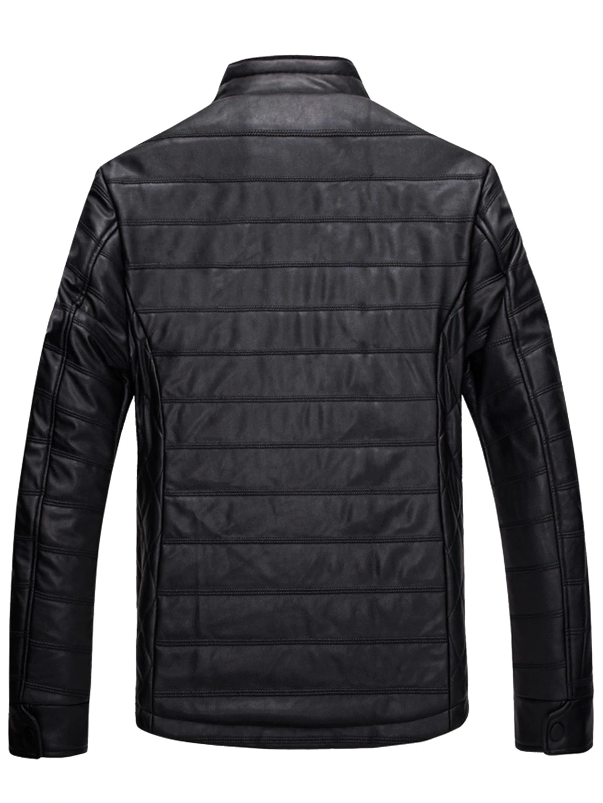 Zipper Stand Collar Faux Leather Jacket