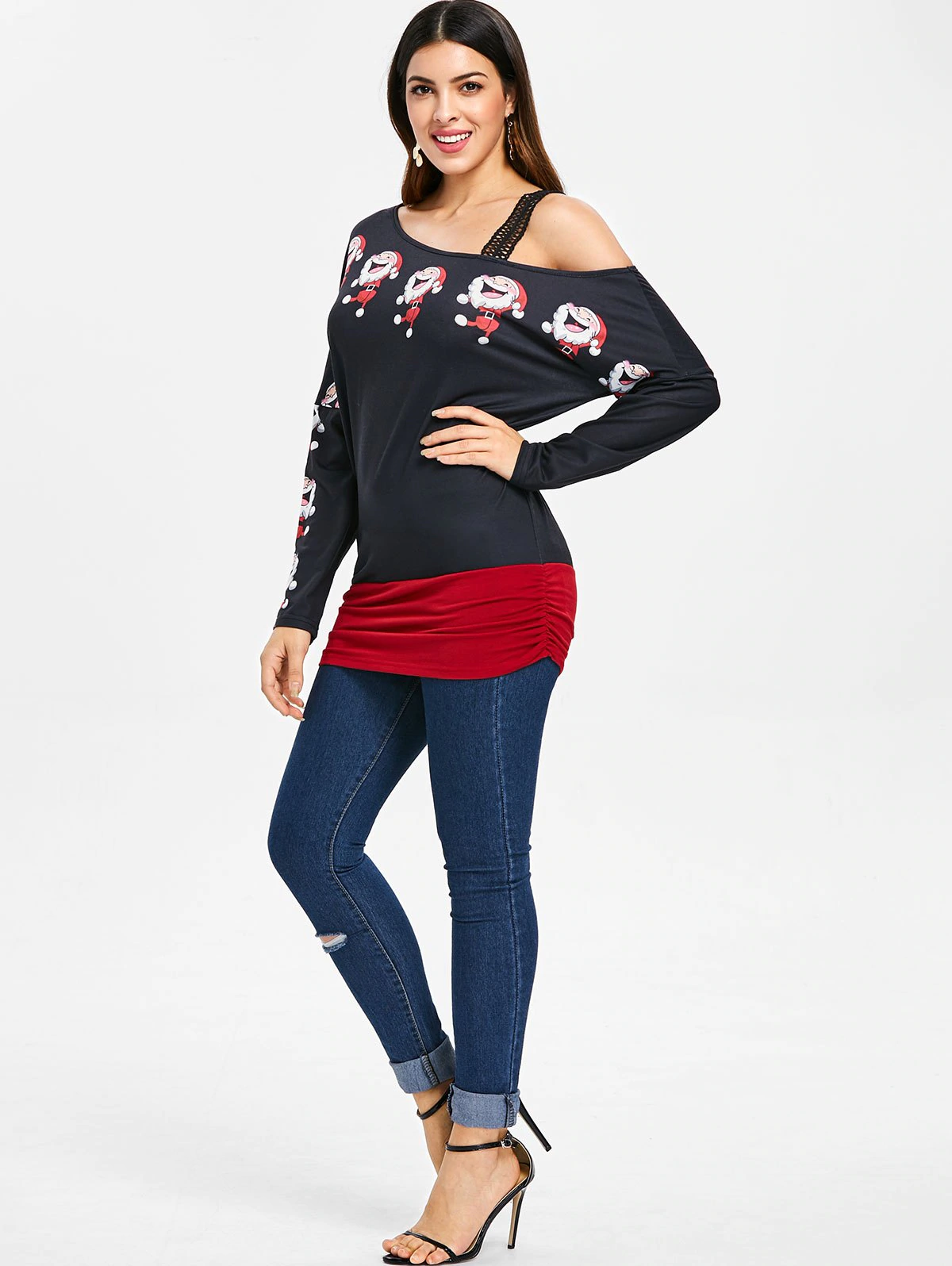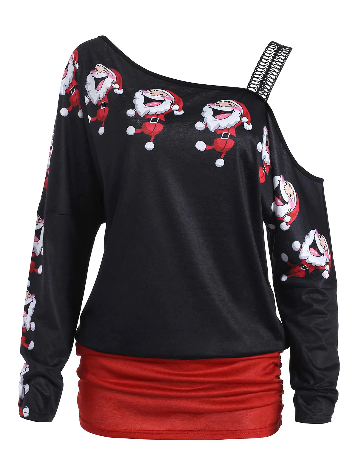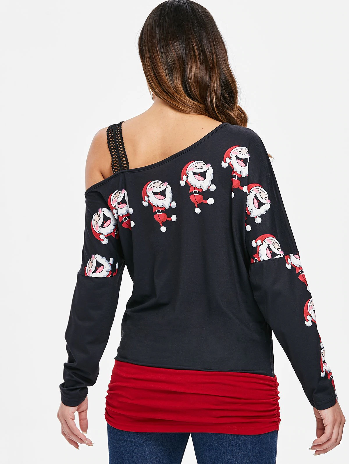 Santa Claus laugh print makes the long sleeve t-shirt look happy and cute, enhances Christmas atmosphere, exposes one shoulder will make you look a little sexy, also shows you are very feminine