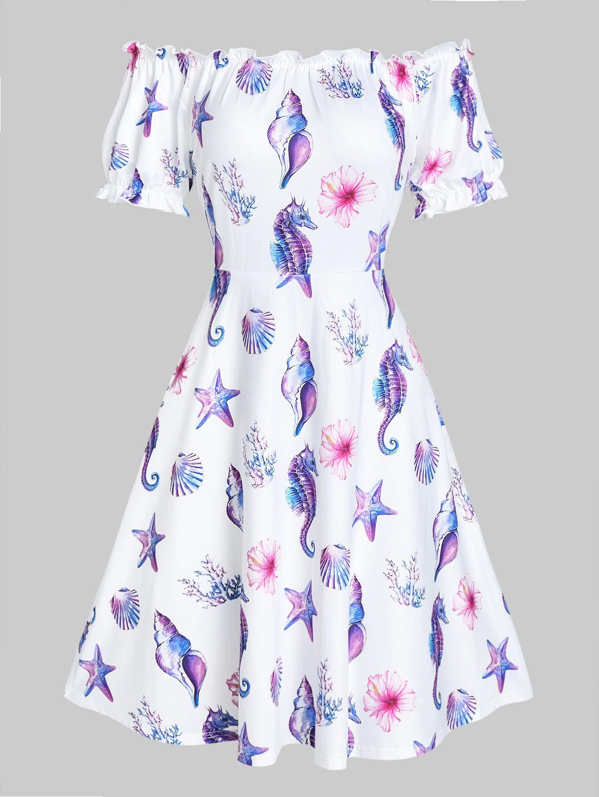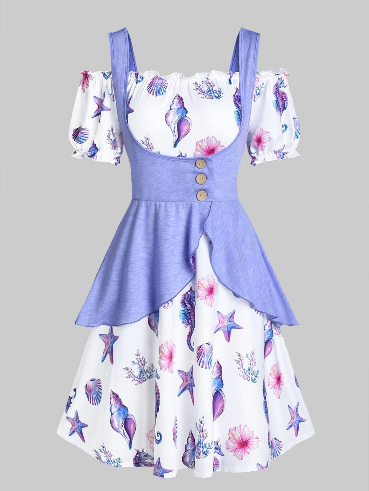 Shells Print Off The Shoulder Dress and Peplum Tank Top