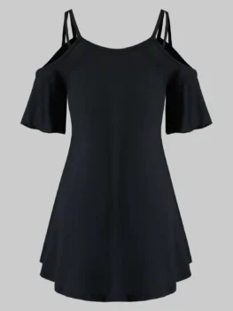 Floral skull print pattern plays up the punk style of a casual-cool tee done in soft cotton. It also features flattering cold shoulders and flutter sleeves which gives it a very feminine drape. Throw this comfortable tee on denim shorts for a chic look. Style: Casual Material: Polyester,Polyurethane Collar: Scoop Neck Shirt Length: Long Sleeve Length: Short Pattern Type: Floral,Skulls…