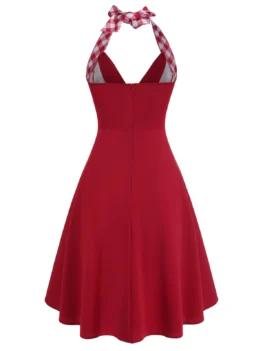 Style: Vintage Material: Polyester,Spandex Silhouette: A-Line Dresses Length: Knee-Length Neckline: Bow Sleeve Length: Half Sleeves Embellishment: Ties Pattern Type: Plaid Elasticity: Elastic With Belt: No Season: Fall,Spring Weight: 0.4200kg Package Contents: 1 x Dress
