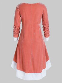 • Button Slit Ruched Contrast Faux Twinset Vintage Dress