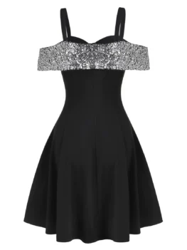 Select options This product has multiple variants. The options may be chosen on the product pageSequin Panel Open Shoulder Skater Dress