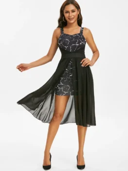 $26.990 out of 5Style: Casual Occasion: Day Material: Polyester Silhouette: High Low Dresses Length: Mid-Calf Neckline: Straps Sleeve Length: Sleeveless Waist: Empire Embellishment: Scalloped Pattern Type: Print,Star With Belt: No Season: Fall,Spring Weight: 0.2700kg Package Contents: 1 x Dress