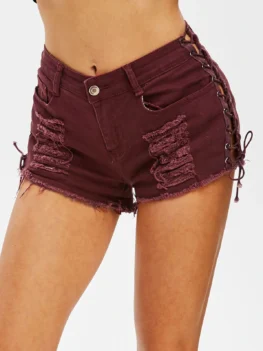 $22.990 out of 5Style: Fashion Material: Cotton,Polyester,Spandex Fabric Type: Denim Length: Mini Type: Ripped Shorts Fit Type: Skinny Waist Type: Mid Closure Type: Zipper Fly Front Style: Flat Pattern Type: Solid Embellishment: Pockets,Ruffles Season: Autumn,Spring,Summer With Belt: No Weight: 0.2000kg