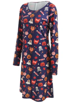 Long Sleeve Halloween Print Dress
