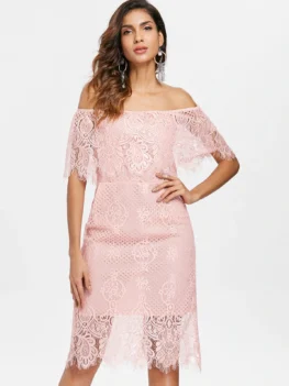 Select options This product has multiple variants. The options may be chosen on the product pageOff Shoulder Ruffled Lace Bodycon Dress