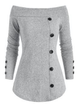 $28.010 out of 5Type: Pullovers Occasions: Daily Style: Fashion Fit Type: Regular Length: Regular Collar: Off The Shoulder Sleeve Length: Full Material: Polyurethane,Rayon Pattern Type: Solid Embellishment: Button Seasons: Autumn,Spring Weight: 0.2500kg Package Contents: 1 x Knitwear