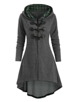 Select options This product has multiple variants. The options may be chosen on the product pagePlaid Horn Button Lace Up High Low Hooded Cardigan