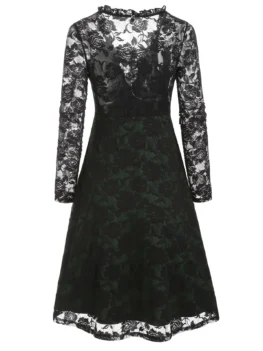 Select options This product has multiple variants. The options may be chosen on the product pagePlunge Neck Lace-up Ruffle Flower Lace Dress