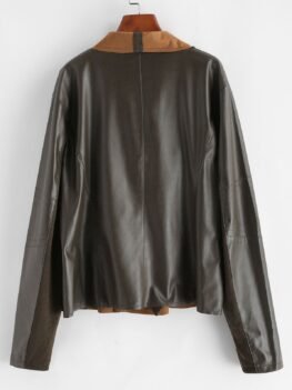 Plus Size Draped Raw Trim Knit Panel Faux Leather Biker Jacket