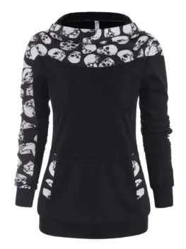 $41.210 out of 5A cool piece, this relaxed fit hoodie features a kangaroo pocket and contrast skull print which is suitable for Halloween days. Pair it with pants to complete this chic look! Material: Polyester,Polyurethane Shirt Length: Regular Sleeve Length: Full Style: Gothic Pattern Style: Skulls Season: Fall,Spring Weight: 0.4300kg Package Contents: 1 x Hoodie