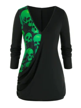 $30.520 out of 5A cool piece, this relaxed fit T-shirt features a trendy V-neck, draped front, and Horrible skull lace which is suitable for Halloween days. Pair it with pants to complete this cool look! Style: Fashion Material: Polyester Shirt Length: Long Collar: V-Neck Sleeve Length: Full Pattern Type: Skulls Season: Fall,Spring Weight: 0.2800kg Package Contents: 1 x T Shirt