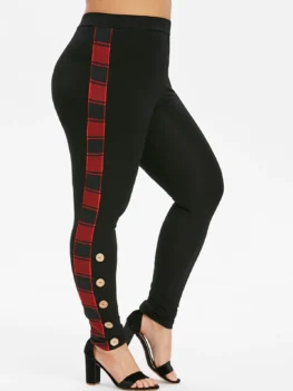 $55.430 out of 5Featuring contrast plaid at sides for decoration, the skinny pants feature a high waist and buttoned decoration for support and style. Style: Fashion Length: Normal Material: Polyurethane,Rayon Fit Type: Skinny Waist Type: High Closure Type: Elastic Waist Pattern Type: Plaid Pant Style: Pencil Pants Weight: 0.3400kg Package Contents: 1 x Pants