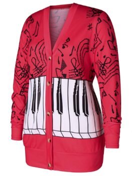 Plus Size Musical Notes Print Coat