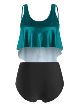 Plus Size Moon Phase Print Ruffled Tankini Swimwear