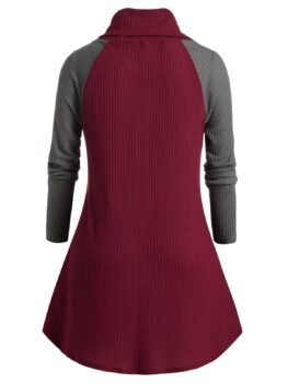 Plus Size Oblique Buttons Two-tone Sweater