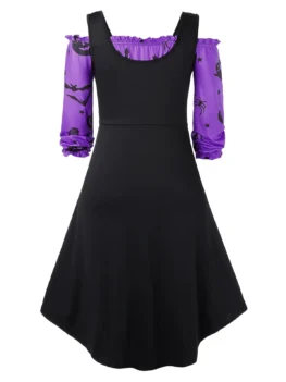 Plus Size Off The Shoulder Pumpkin Print Halloween Vintage Dress