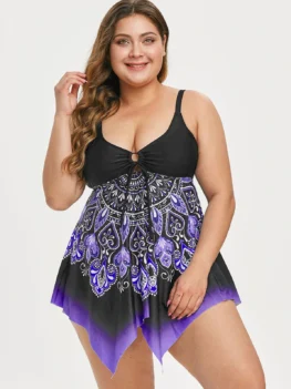 $37.810 out of 5Featuring uneven handkerchief hems with the pretty ombre pattern, the tankini top is fashioned with ethnic patterns to shape the asymmetric silhouette with a tied detail to help adjust the cups and easily adjustable straps for your favorite fit. A cheeky bottom flatters and offers full coverage that you'll love it. Gender: For Women Swimwear…