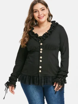 $41.885 out of 5Style: Fashion Material: Polyester,Polyurethane Shirt Length: Long Collar: V-Neck Sleeve Length: Full Embellishment: Ruffles,Ties Pattern Type: Solid Fabric Stretch: Slight Stretch Season: Fall,Spring Weight: 0.3000kg Package Contents: 1 x T Shirt