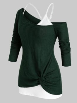 Plus Size Skew Neck Twist Knitwear and Tank Top Set