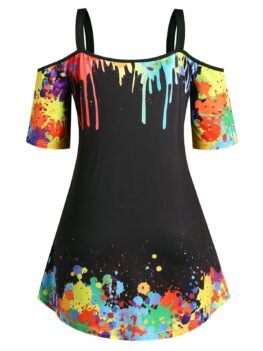 $41.740 out of 5Style: Fashion Material: Polyester Collar: Square Neck Shirt Length: Long Sleeve Length: Short Sleeve Type: Cold Shoulder Pattern Type: Paint Splatter,Skulls Season: Spring,Summer Weight: 0.1800kg Package Contents: 1 x Tee