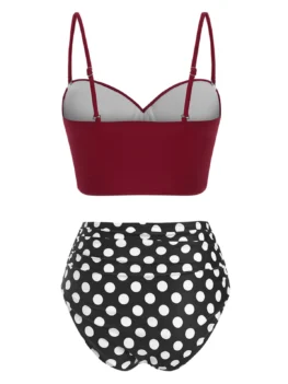 $48.955 out of 5Style: Vintage Swimwear Type: Bikini Gender: For Women Material: Polyester,Polyurethane Bra Style: Padded Support Type: Wire Free Neckline: Sweetheart Neck Pattern Type: Polka Dot Placement Print: No Embellishment: Button,Cut Out Waist: Natural Season: Summer Weight: 0.2160kg Package Contents: 1 x Bra 1 x Briefs