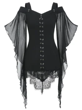$50.670 out of 5Style: Gothic Material: Polyester Collar: Sweetheart Neck Sleeve Length: Three Quarter Shirt Length: Long Season: Fall,Summer Embellishment: Criss-Cross,Lace Pattern Type: Others Weight: 0.3500kg Package Contents: 1 x T-shirt