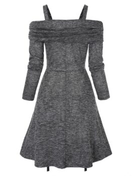 Twist Front Cold Shoulder Heathered Lace-up Dress