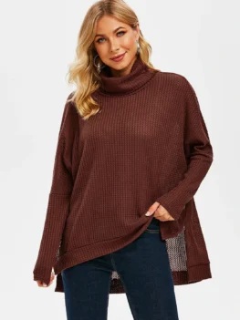 Turtleneck Drop Shoulder High Low Slit Knitwear