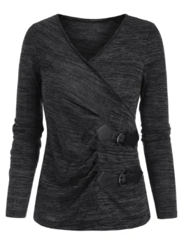 Style: Casual Material: Polyamide,Rayon Collar: V-Neck Shirt Length: Regular Sleeve Length: Full Pattern Type: Solid Color Embellishment: Lace up,Ruched Season: Fall,Spring Weight: 0.2400kg Package Contents: 1 x Tee