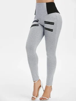 Style: Casual Occasion: Daily Material: Polyester,Spandex Waist Type: High Pattern Type: Patchwork Embellishment: Zipper Length: Full Season: Fall,Spring Weight: 0.2800kg Package Contents: 1 x Leggings