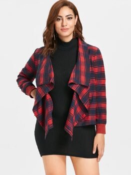 Plus Size Plaid Draped Jacket