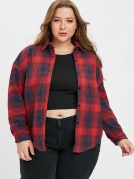 Plus Size Plaid Casual Coat