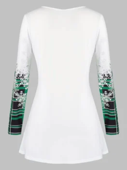 Plus Size Plaid Snowflake Christmas Long Sleeve Tee