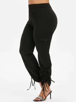 Plus Size Pockets Cinched Pants